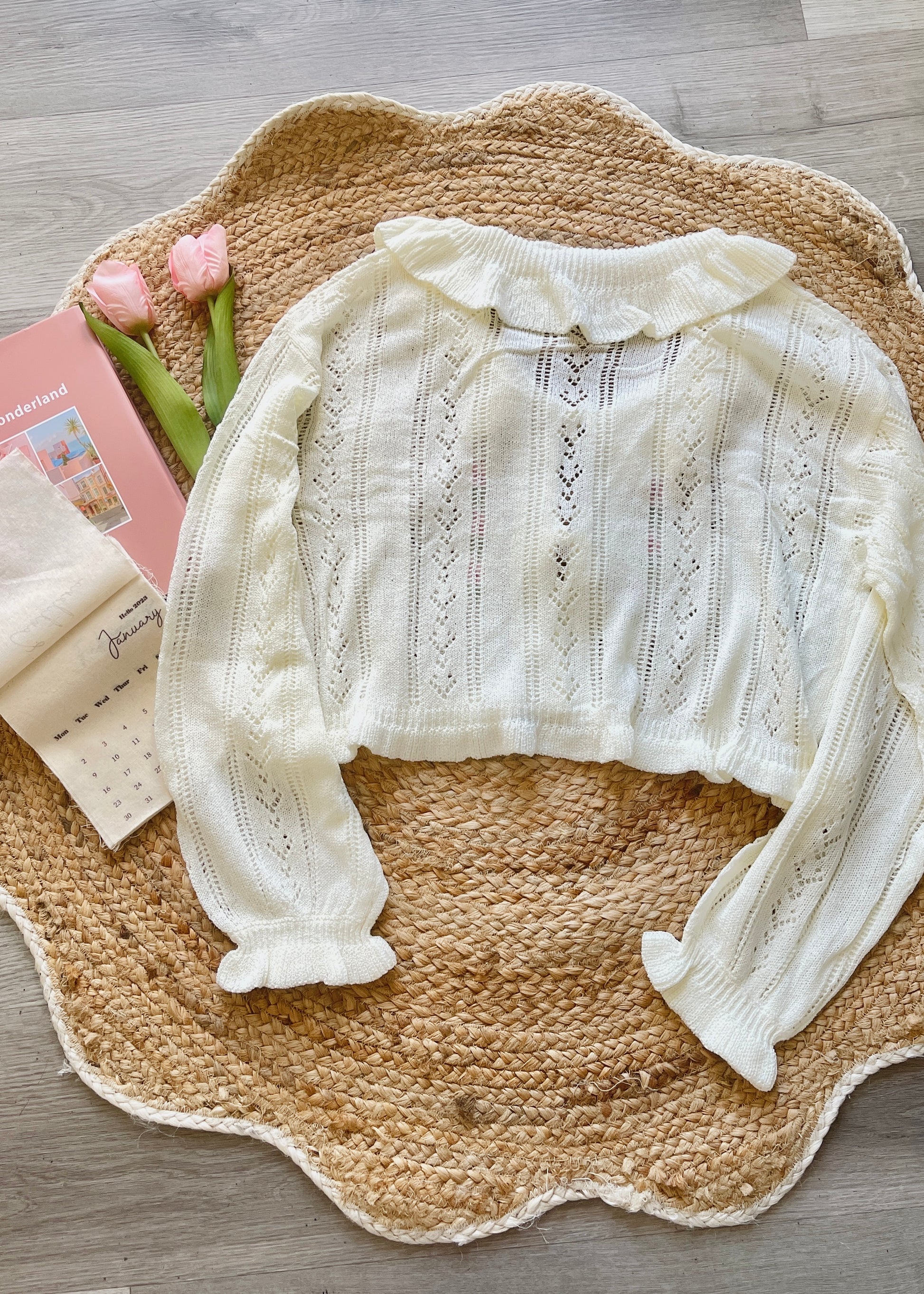 Bring romantic charm and timeless elegance to your everyday outfits with this ruffle crochet cardigan—a sweet staple for any season.