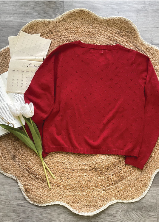 Wishes Come True Wool Cable Knit Cardigan with Crochet Flowers