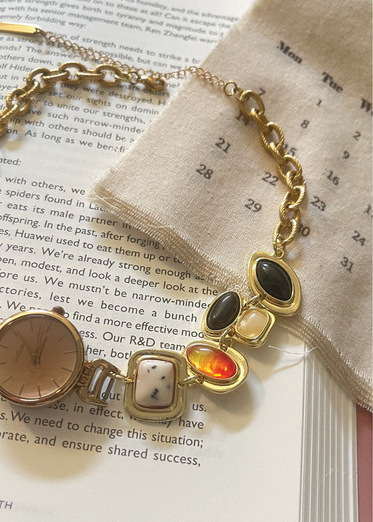 Watch Pendant Stone Necklace