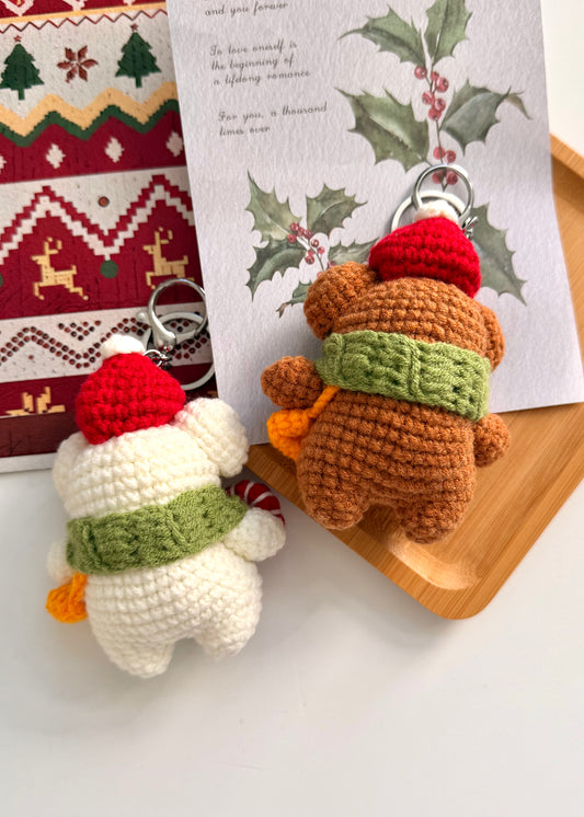Handmade Crochet Christmas Bear Keychain – Christmas Plush Key Ring Gift