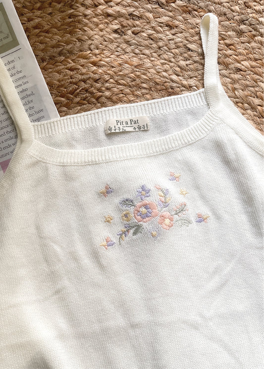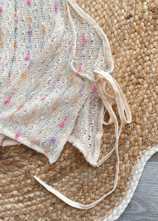 Women's Cream Knit Tank Top with Adjustable Tie-Up Sides