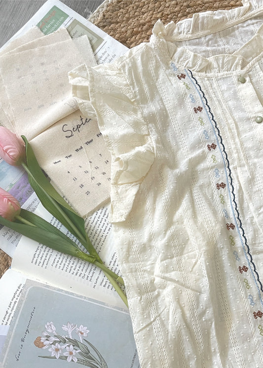 Women’s Cottage Beige Bunny Embroidered Shirt