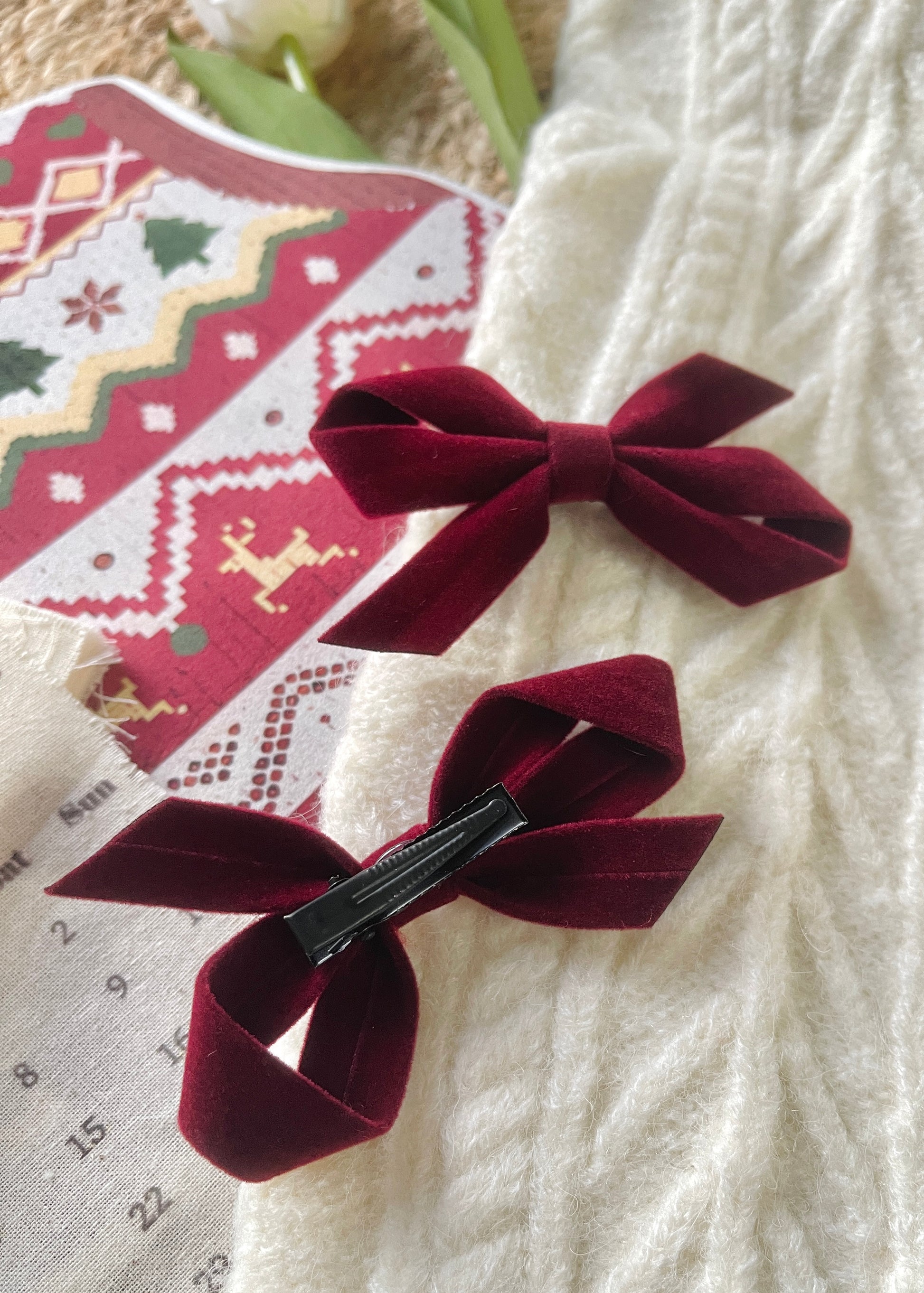 Dark Red Velvet Bow Hair Clips – Elegant Holiday Hair Accessories